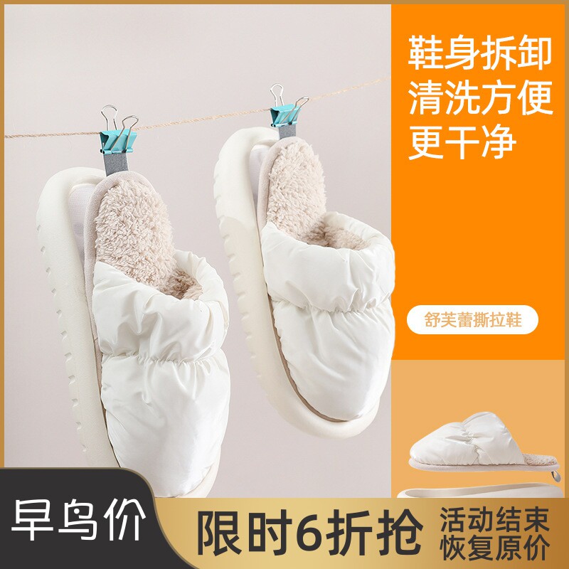 极速可拆卸撕拉棉拖鞋女士2023秋冬季新款室内居S家厚底防滑保暖