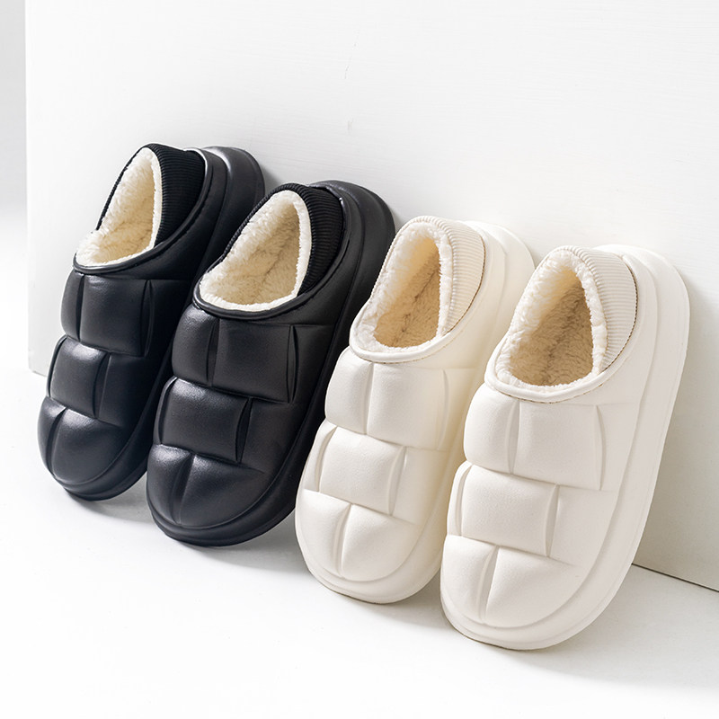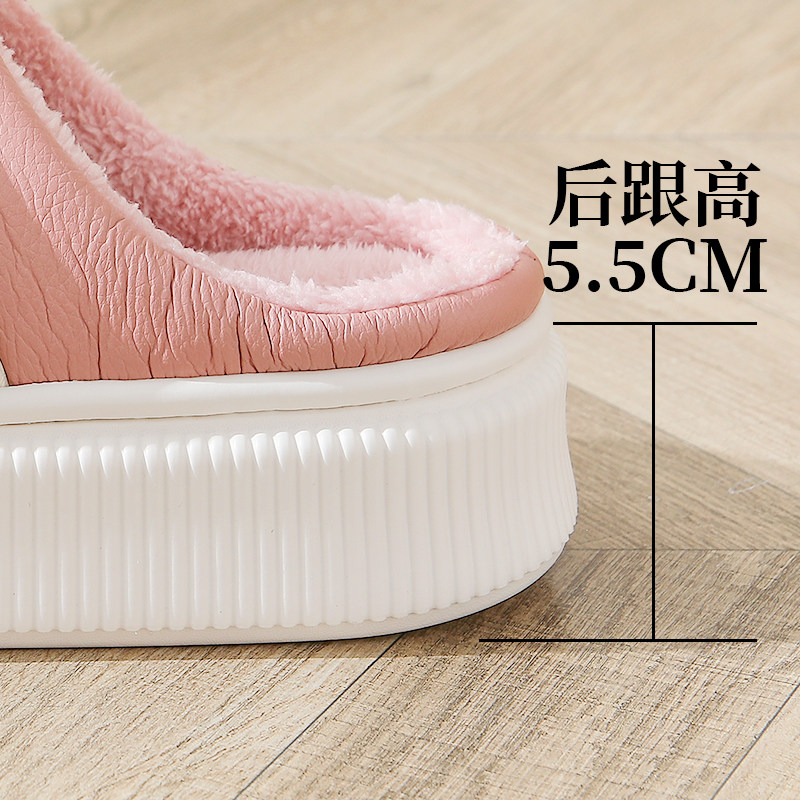 极速情侣棉拖鞋女室内居家包跟厚底D防水PU皮拖鞋男冬增高保暖防