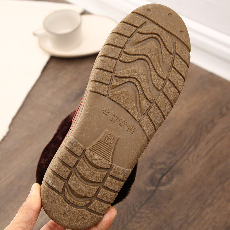 防水棉拖鞋男厚底包跟防滑加绒加厚老人真皮包脚妈妈保暖女士冬季
