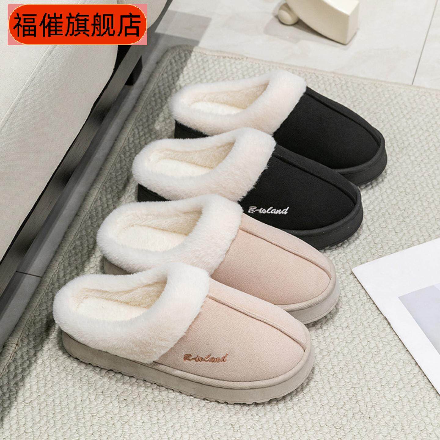 棉拖鞋女士秋冬季室内居家防滑加绒保暖厚底情侣款外穿毛毛绒棉拖