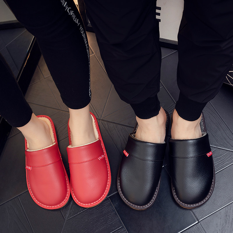 极速情侣防水PU皮棉拖鞋女室内软底防G滑保暖加绒保暖包跟棉鞋居