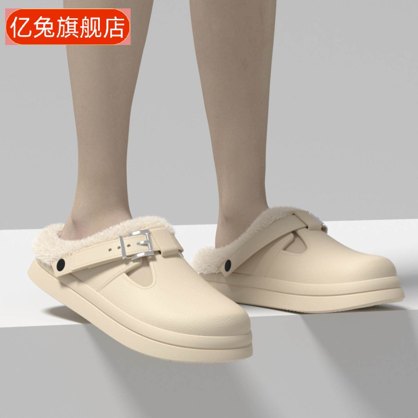 防水棉拖鞋女士冬季加绒室内居家保暖棉拖时尚网红外穿勃肯鞋