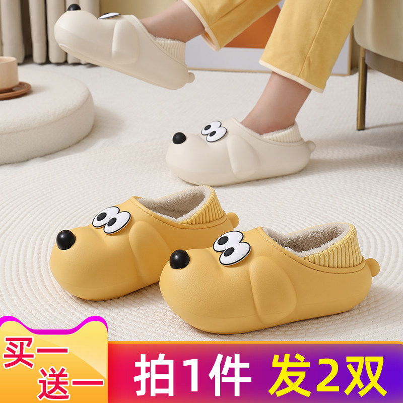 小狗棉拖鞋女士冬季家居室内保暖可爱毛毛绒厚底防滑拖鞋新款