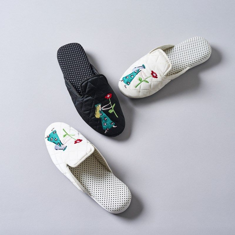 秋冬绸缎面刺绣室内家居软底拖鞋静音防水防滑吸汗法式高级家居鞋