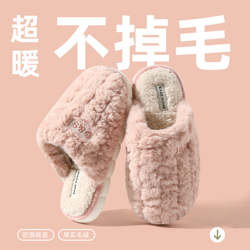 买一送一棉拖鞋女情侣秋冬季室内家居防滑厚底踩屎感保暖毛拖鞋男