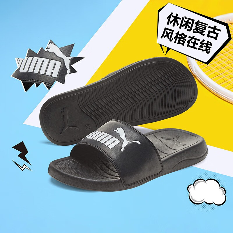 彪马(PUMA)官方 拖鞋夏季情侣凉拖鞋休闲运动拖鞋户外沙滩拖鞋POPCAT 372279 黑色-白 01 43