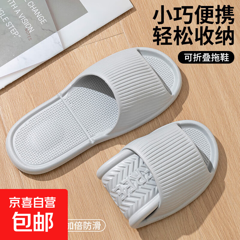 旅行拖鞋女士可折叠便携式旅游沙滩出差一次性酒店洗澡防滑凉拖男 灰色 44-45 码适合43-44脚