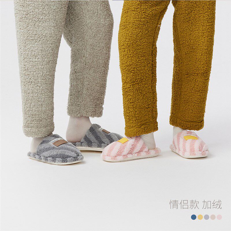 极速情侣款 男h士女士毛绒拖鞋 保暖防滑家居棉拖 可爱撞色室内鞋