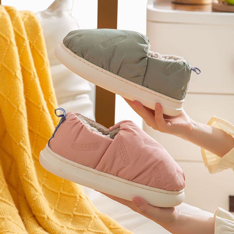极速2022新款泡芙加绒简约情侣拖鞋女冬款包跟厚T底防滑室内家居