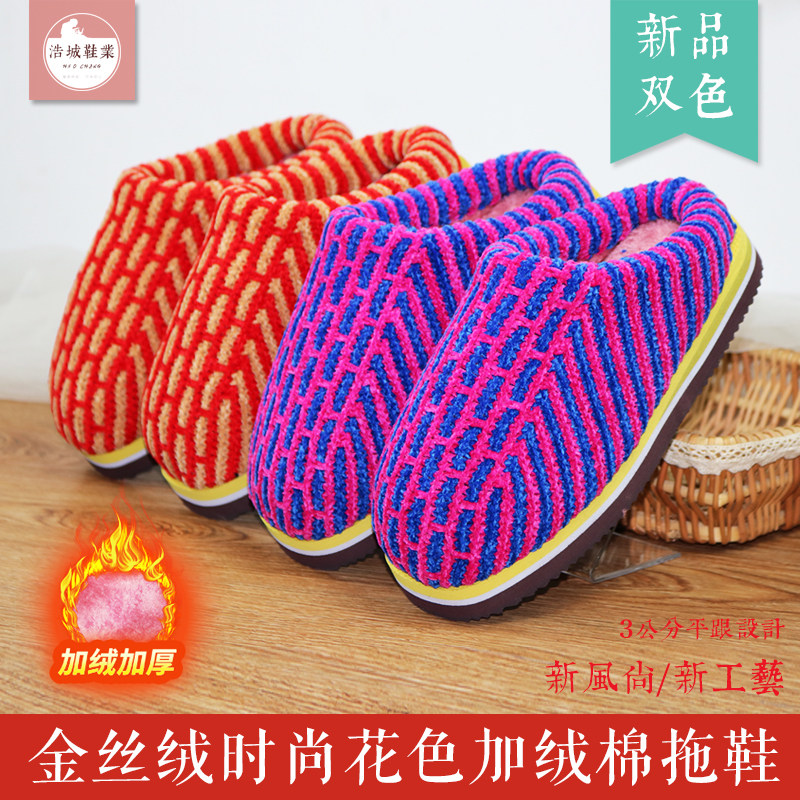 孺子牛底居家防滑耐磨毛线拖鞋纯手工光泽绒线编织情侣保暖棉拖鞋