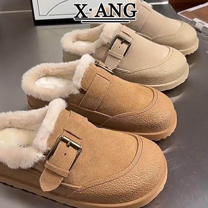 牛皮版勃肯鞋加保暖羊羔毛毛鞋2026新款秋冬季一脚蹬棉鞋包头拖鞋