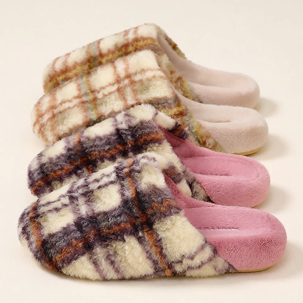 加厚加绒秋冬新品时尚格子条纹舒适居家外穿情侣款男女棉拖鞋