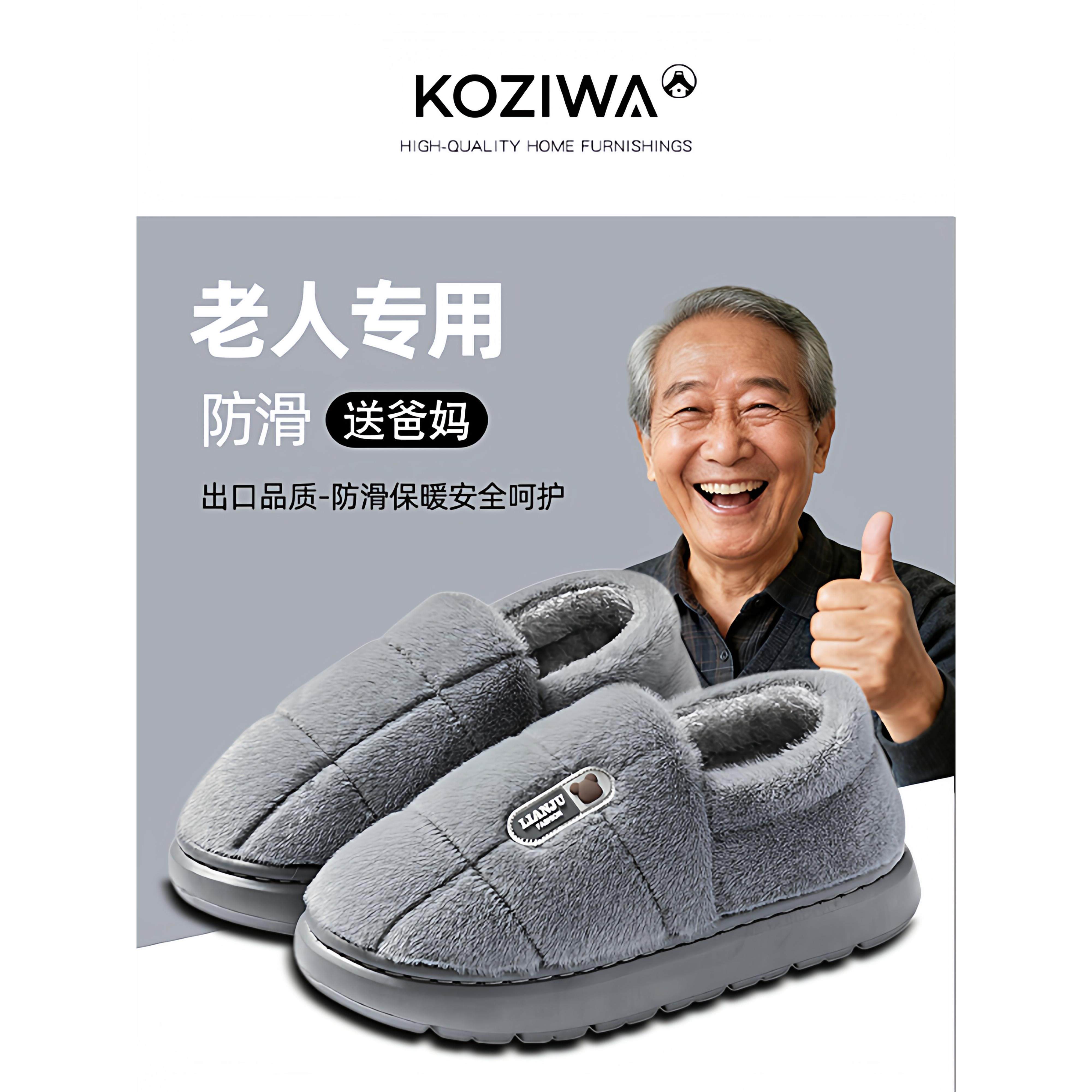 日本老人棉拖鞋男女士冬季特大码加肥加大号居家防滑棉鞋包跟保暖