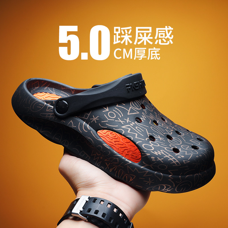 极速洞洞鞋男士外穿透气休闲懒人包头凉J拖鞋夏季软底踩屎感沙滩