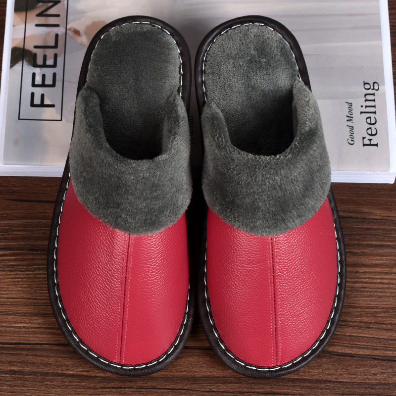 极速真皮拖鞋牛皮居家皮冬v季男女室内情侣防滑上线底保暖家用棉