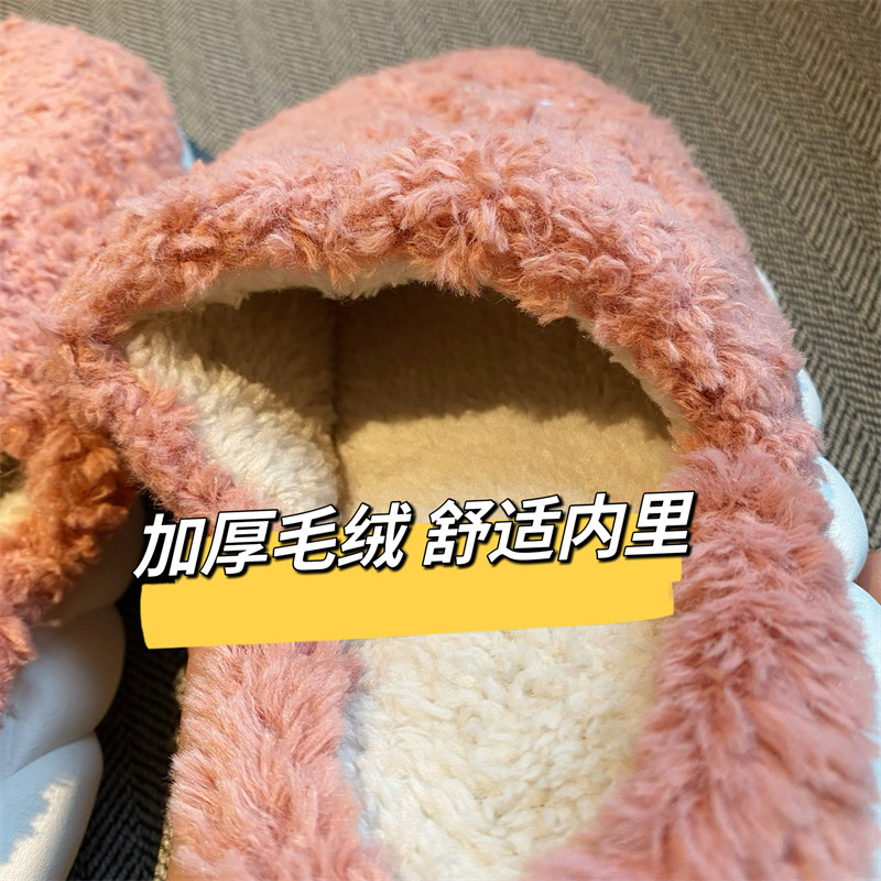 棉拖鞋男秋冬季家居家用室内待客人毛毛绒加绒厚底防滑保暖情侣女