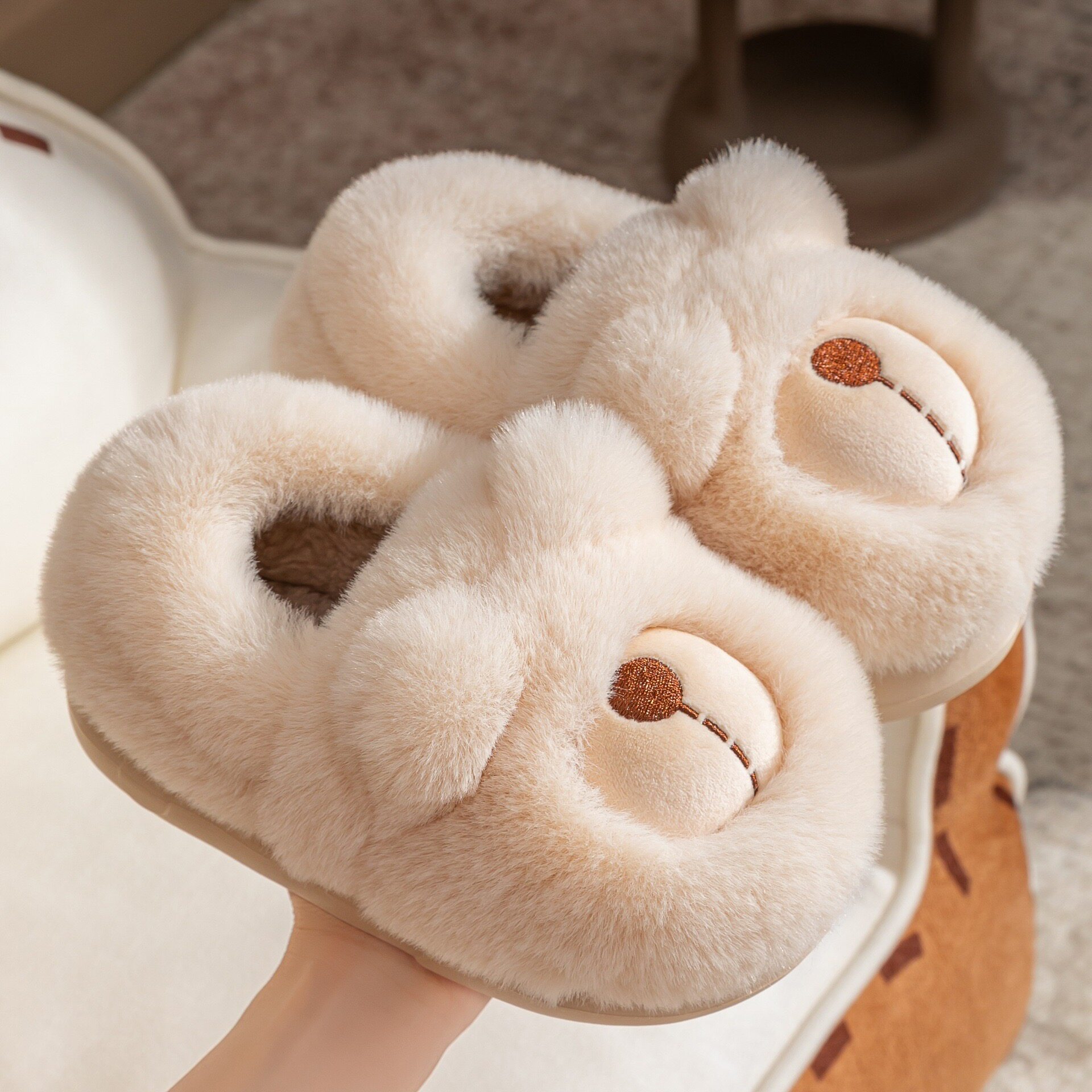 米菲兔棉拖鞋女士2025新款冬季室内家居厚底加绒保暖防滑毛毛棉拖