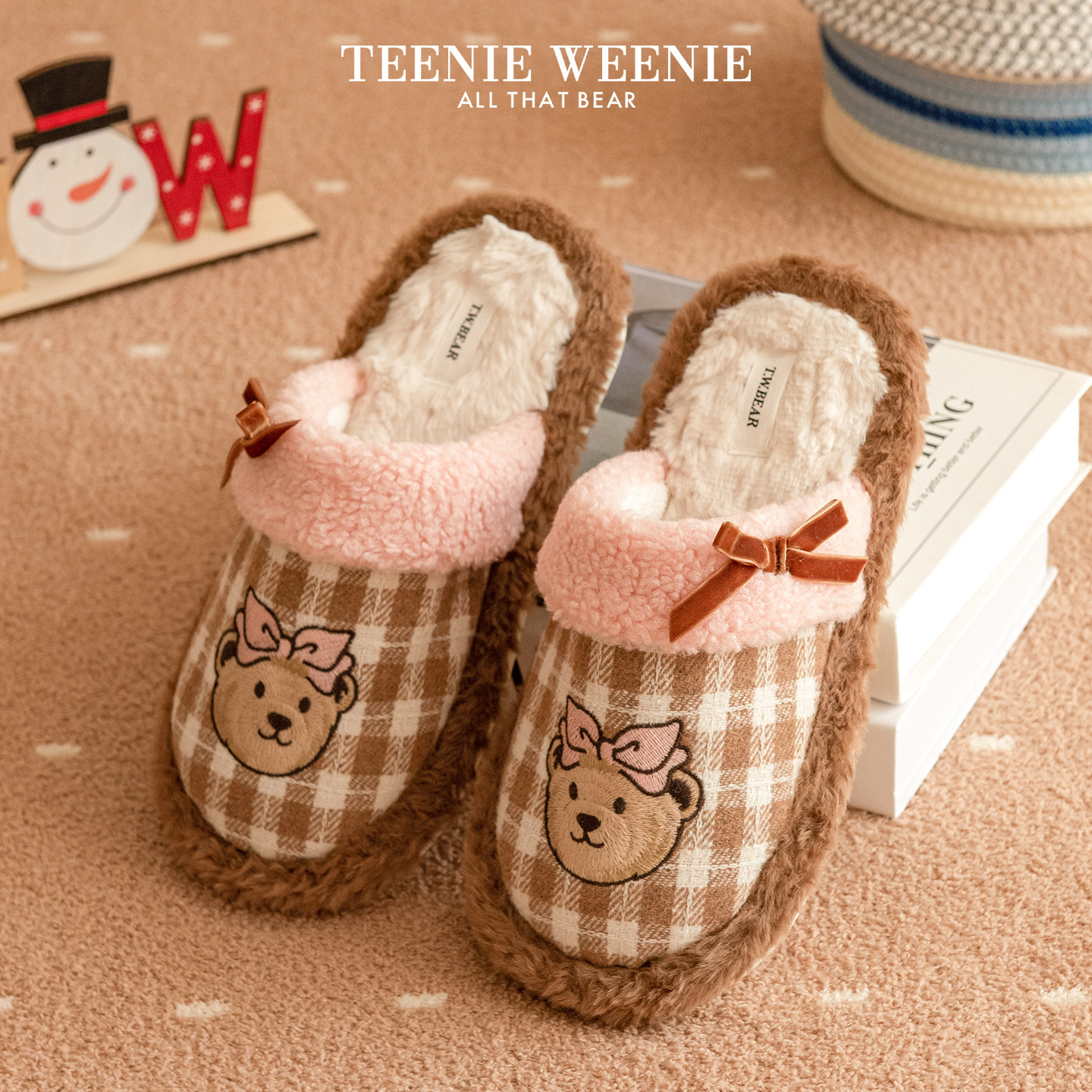 朴西苹果头棉拖鞋女可爱冬季保暖加绒情侣家居室内拖鞋男毛毛拖