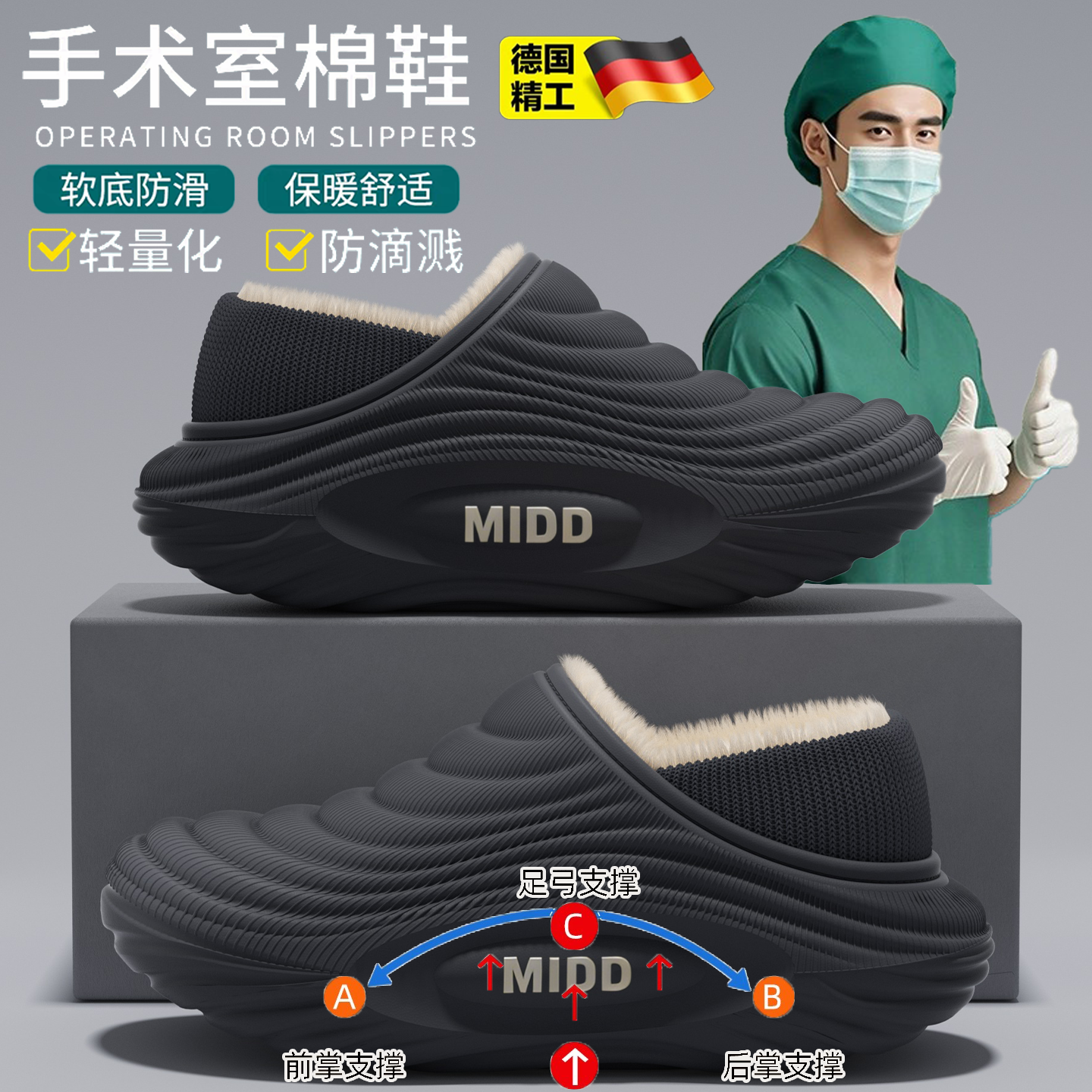 医用手术室棉拖鞋男款包跟保暖冬季外穿足弓防滑防水加绒加厚棉鞋
