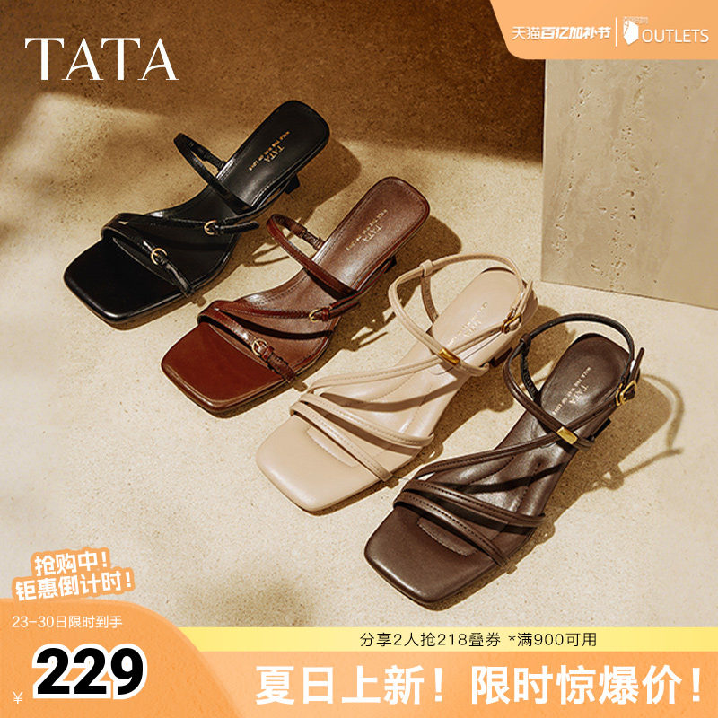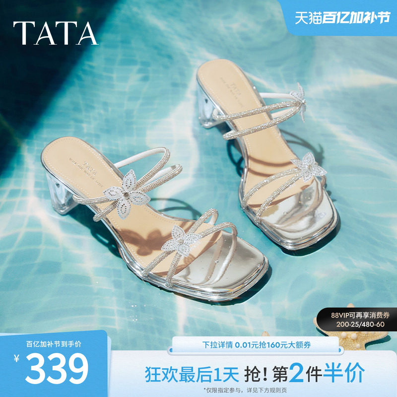 TATA他她仙女系列法式水钻高跟拖鞋女鞋气质透明底凉拖XEK04BT5