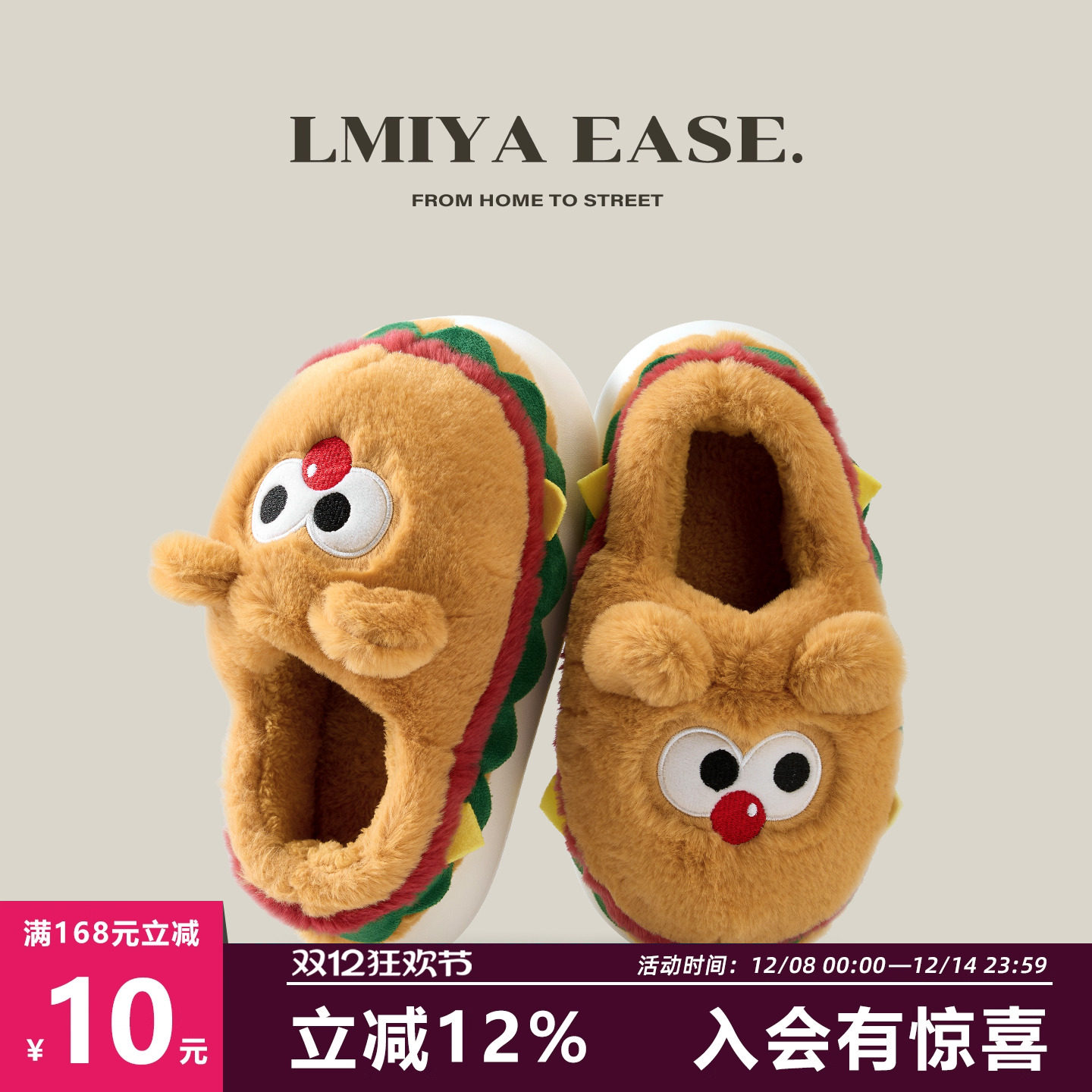 汉堡棉拖鞋女秋冬季2025新款可外穿包跟加厚底家居室内防滑毛绒