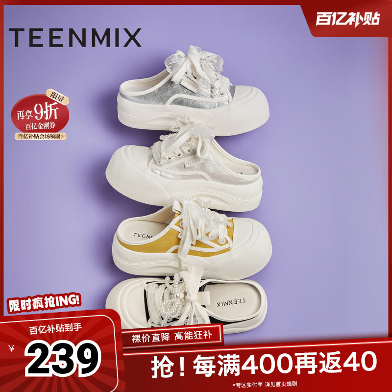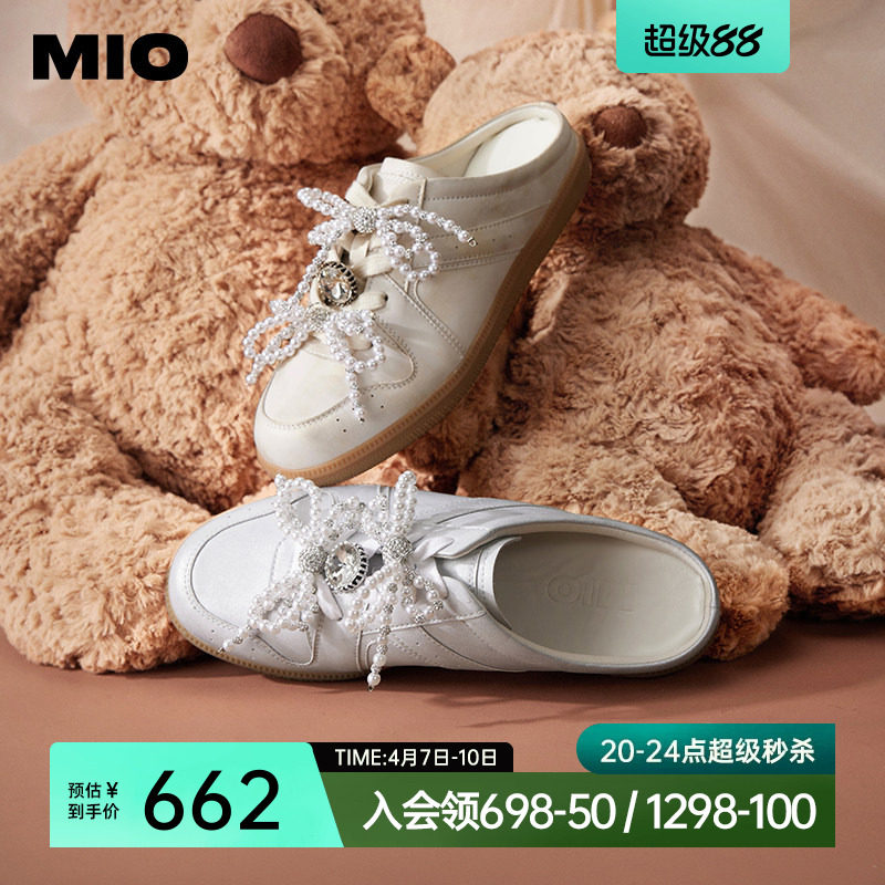 MIO米奥外穿拖鞋女夏季珍珠芭蕾休闲鞋懒人一脚蹬半拖时尚勃肯拖