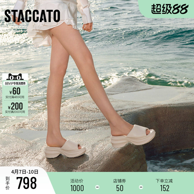 思加图新款雪芙蕾休闲拖鞋厚底增高外穿凉拖鞋女EE503BT5