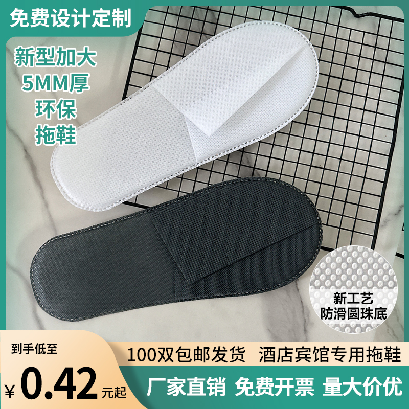 酒店民宿宾馆一次性拖鞋客房无纺布加大码5mm圆珠防滑底拖鞋定制