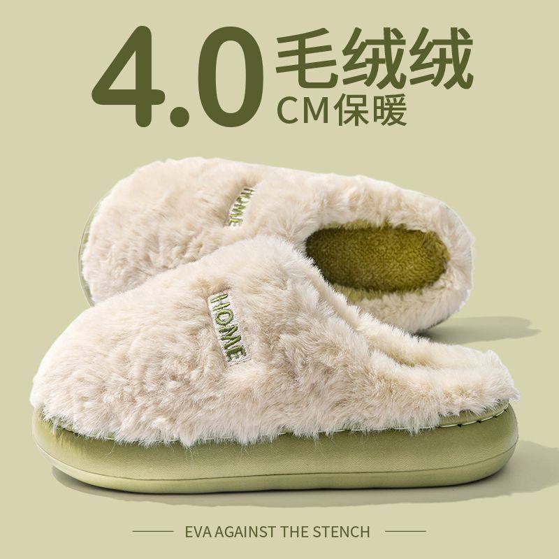 踩屎感棉拖鞋男冬季新款室内家居防滑外穿厚底保暖毛毛绒拖鞋女冬