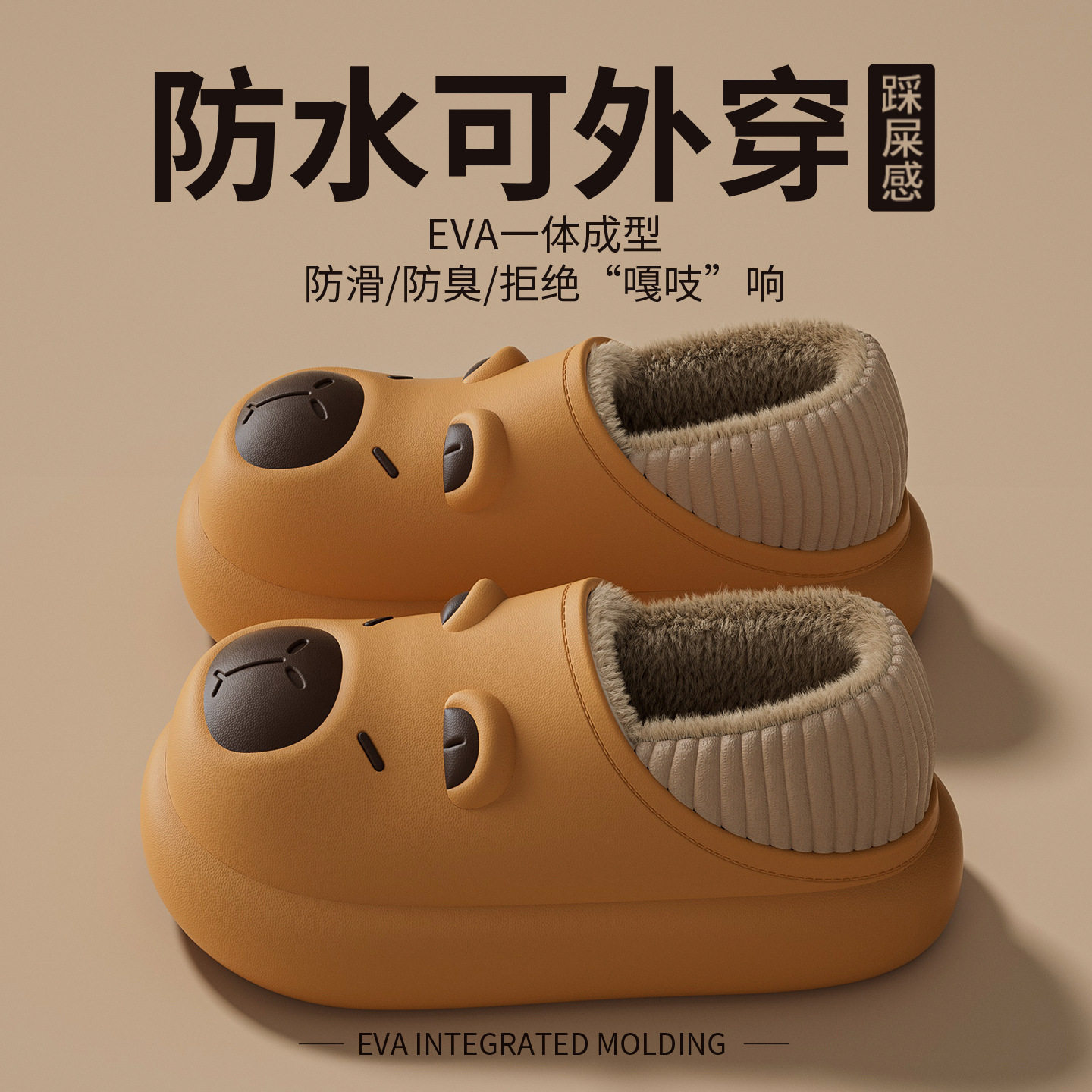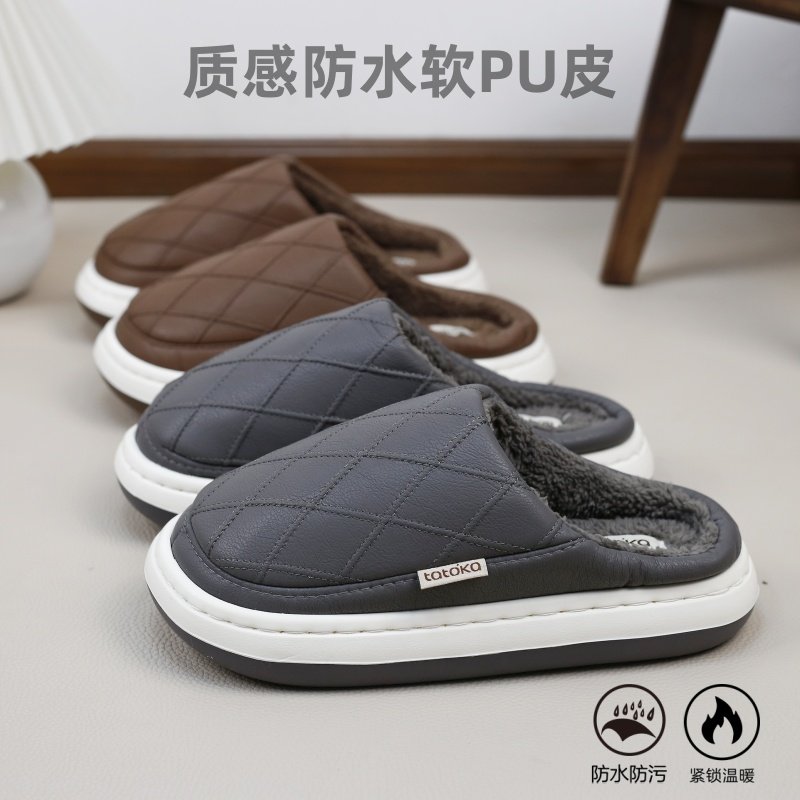 厚底防水棉拖鞋女款2025新款秋冬季外穿加绒保暖增高包跟棉鞋冬天