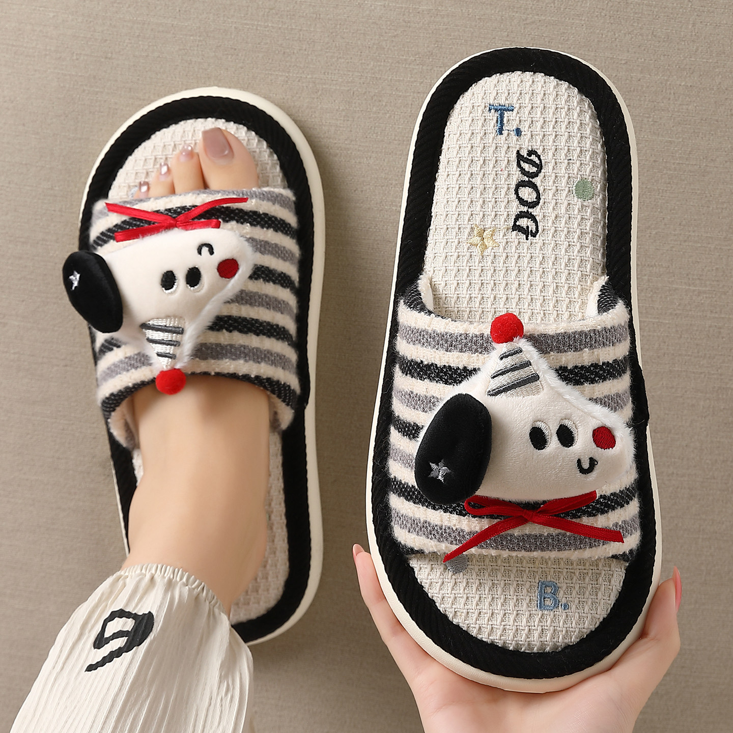 透气吸汗亚麻拖鞋女款2026新款室内家居静音防滑防臭卡通凉拖女士