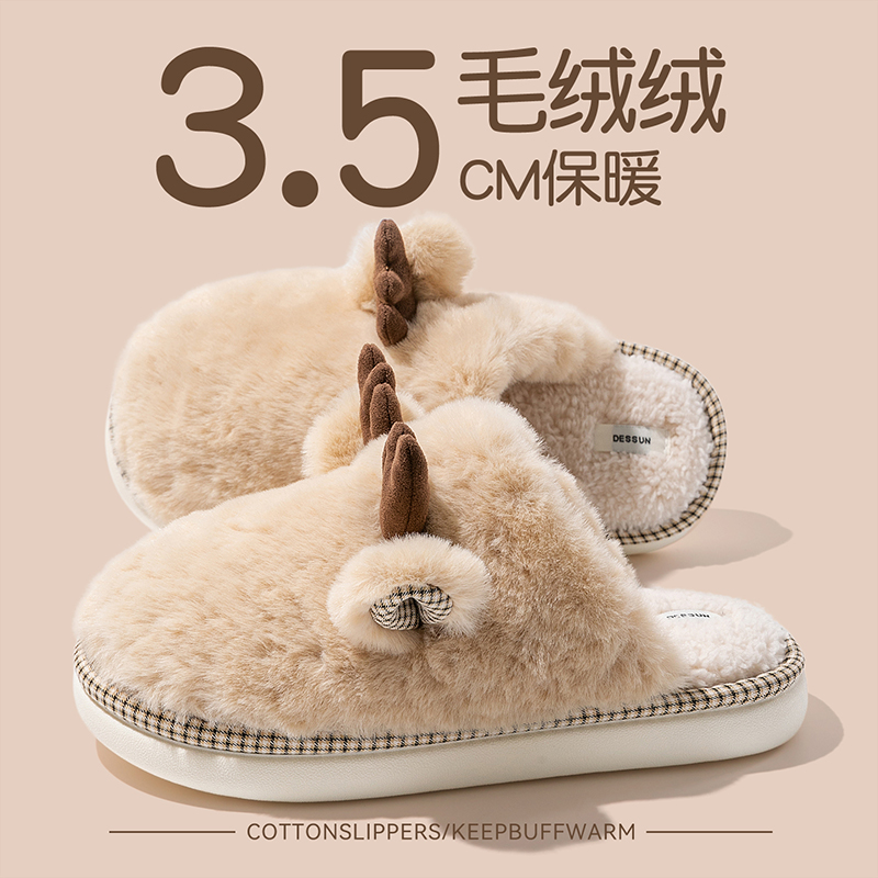 卡通新款棉拖鞋女秋冬季室内家居家用厚软底防滑情侣保暖毛毛绒男