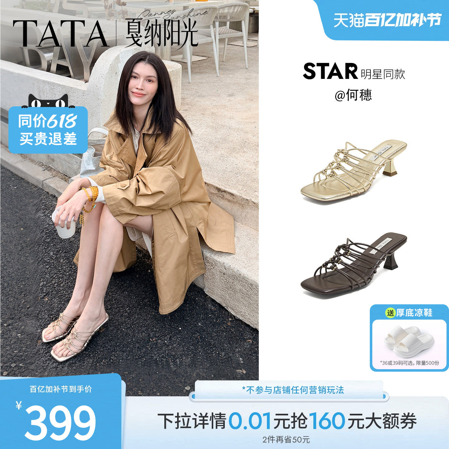 何穗同款TATA他她戛纳阳光高跟拖鞋女外穿仙女风凉鞋新款7UJC2BT6