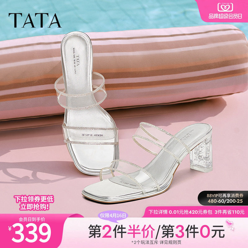 TATA他她法式气质高跟拖鞋女鞋通勤一字带休闲凉鞋夏新款XEK03BT5