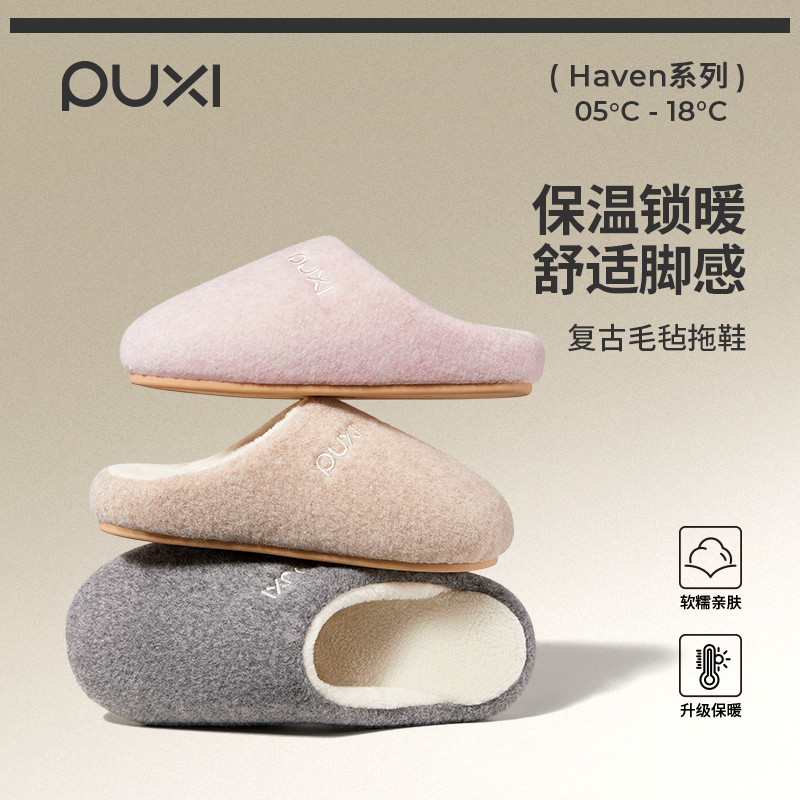 日本MUl棉拖鞋女秋冬季包头保暖毛毛绒加厚软底防滑踩屎感情侣鞋