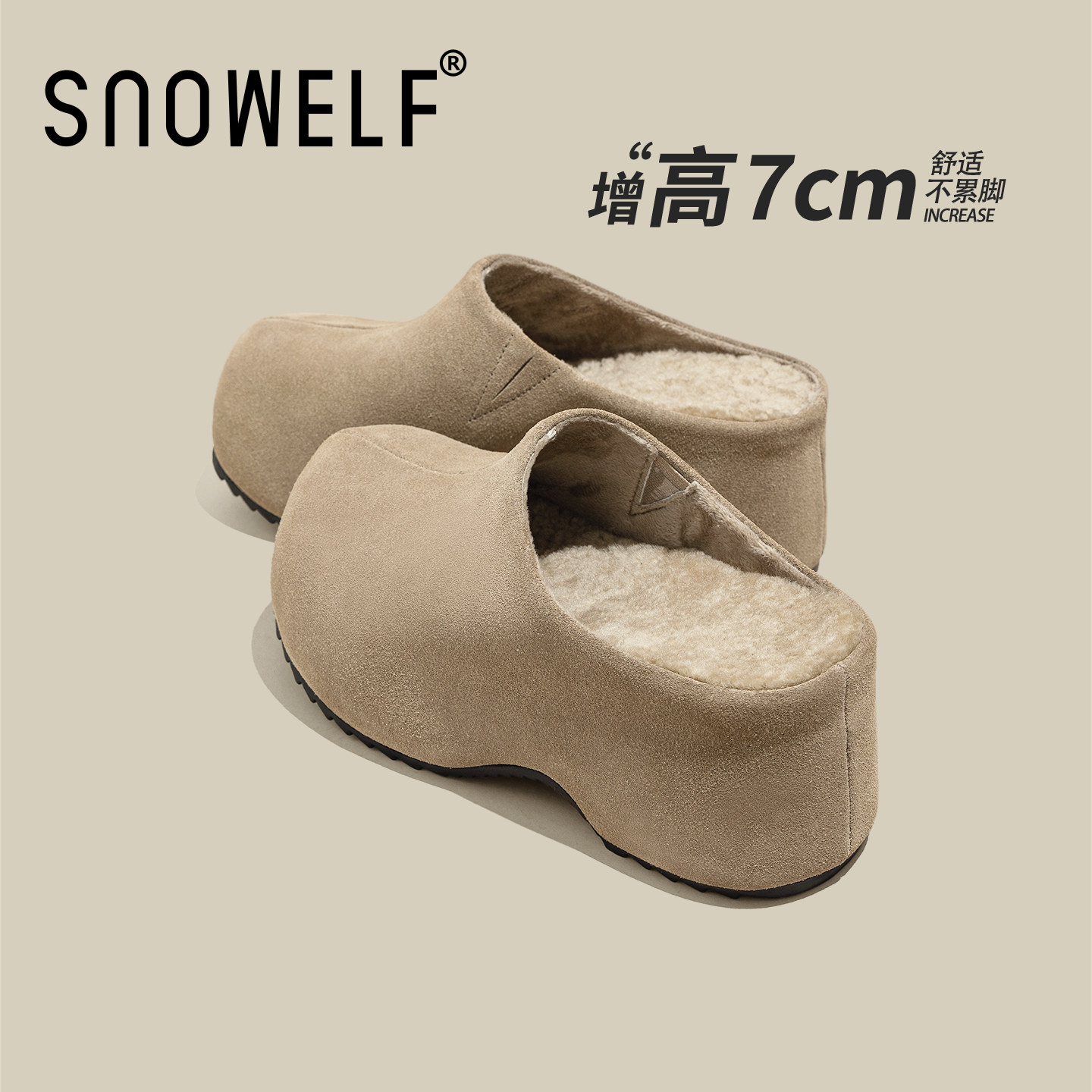 NOOWA厚底包头拖女2025秋新款真皮小个子增高轻便懒人一脚蹬拖鞋