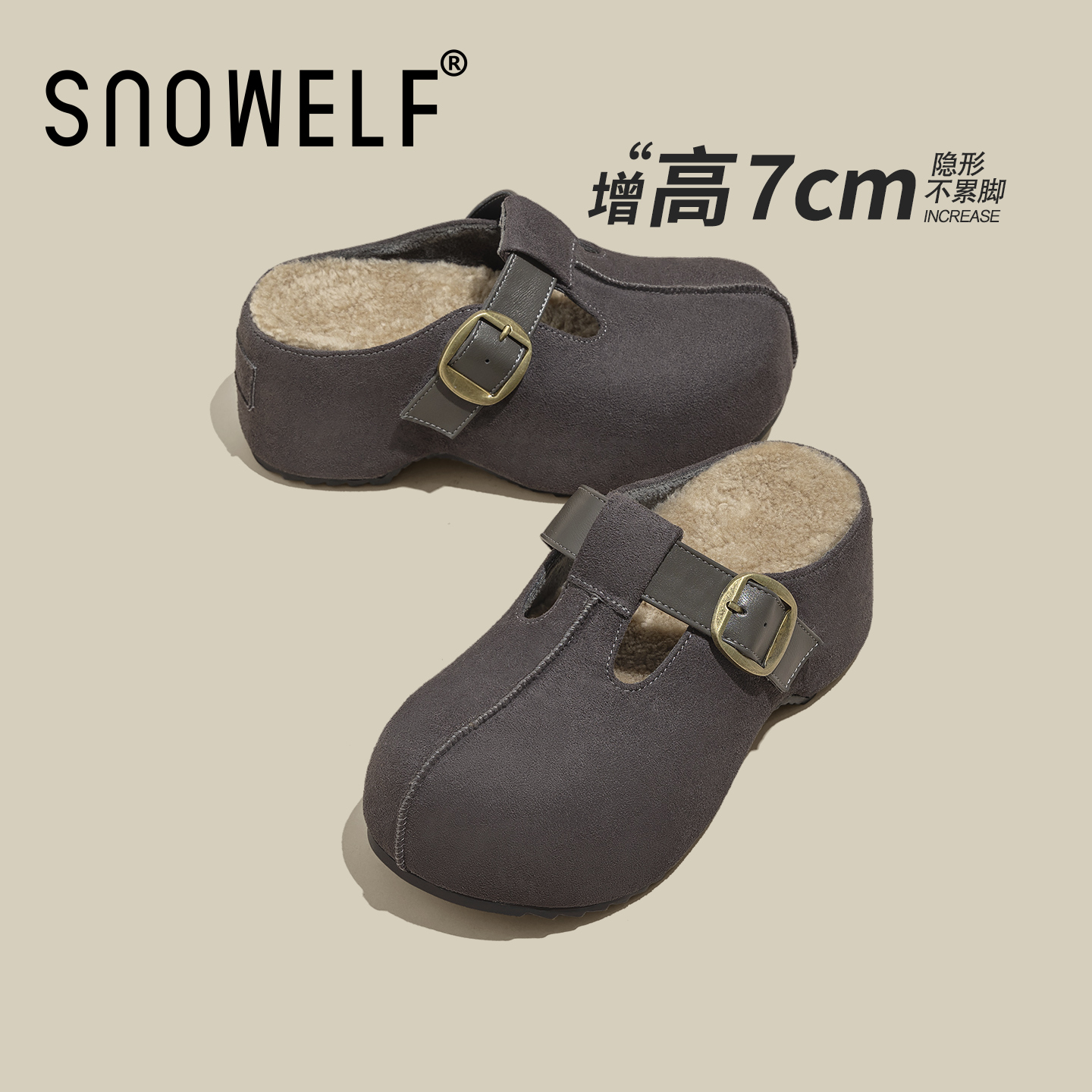 雪莉玫棉拖鞋秋冬防滑女毛毛绒一字拖可爱室内居家可外穿2025新款