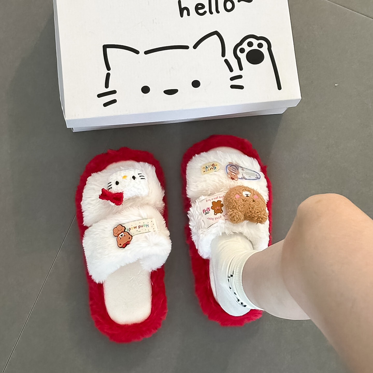 哈喽Kitty棉拖鞋毛毛拖鞋居家防滑静音秋冬外穿保暖学生宿舍百搭