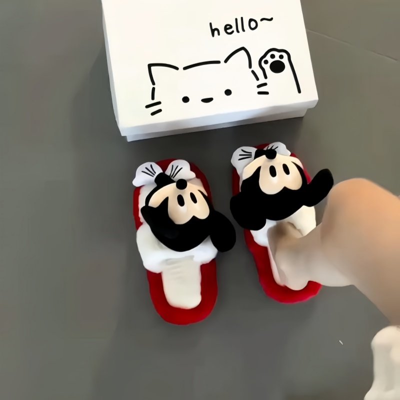 【冬天的第一双棉拖鞋】可爱卡通米奇毛毛拖鞋女一字居家休闲棉拖