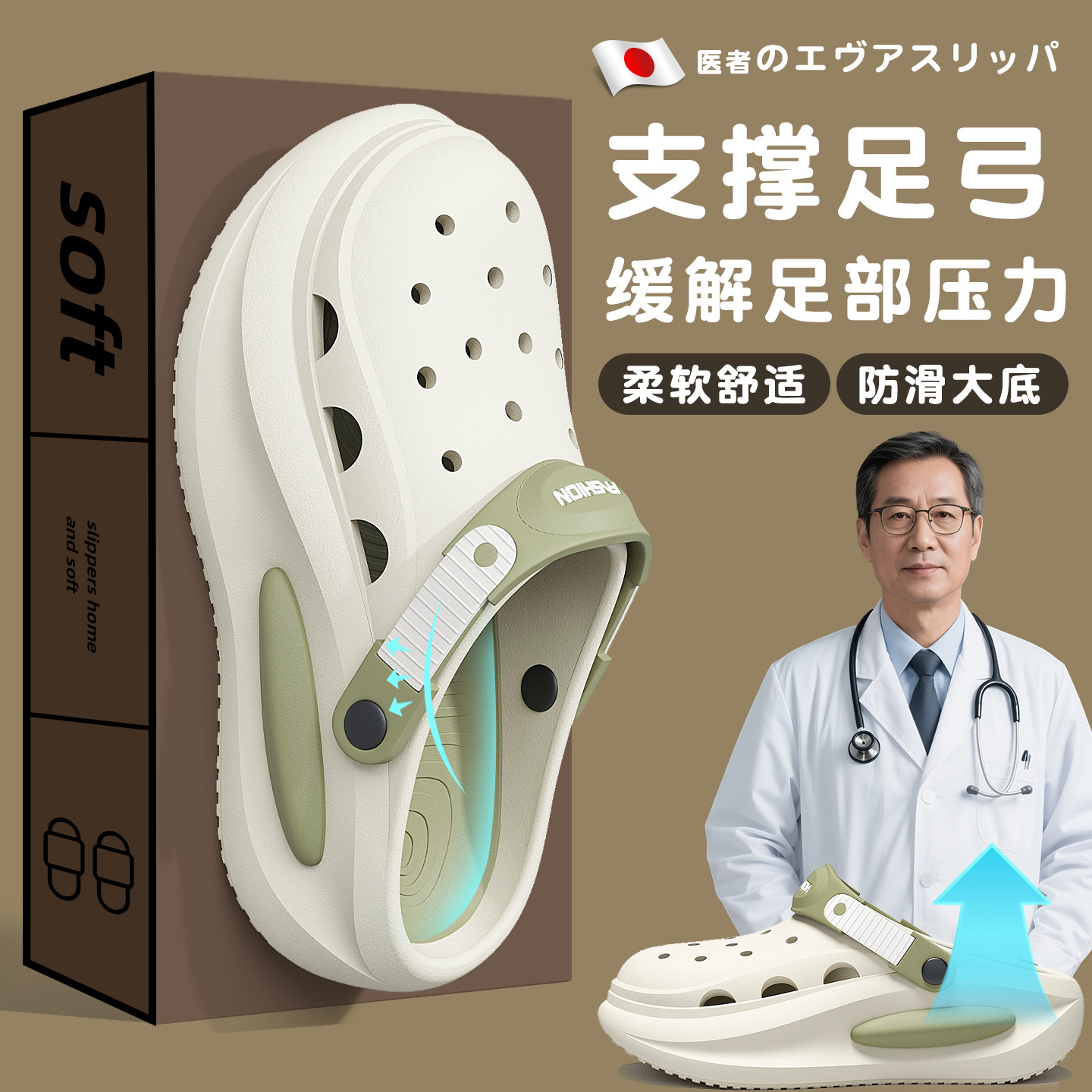 医用手术室拖鞋男款夏季防臭外穿2026新款防滑厚底足弓支撑洞洞鞋