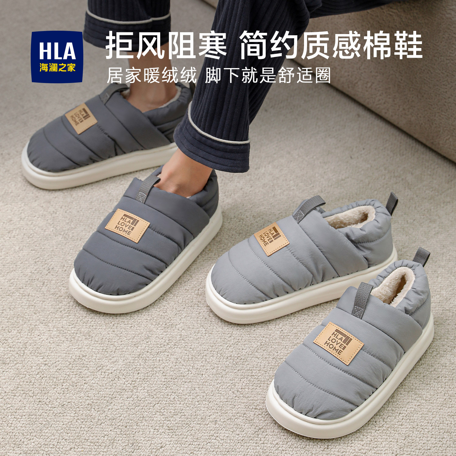 海澜之家拖鞋棉拖鞋男士新款秋冬季保暖家居女包跟外穿防滑防水
