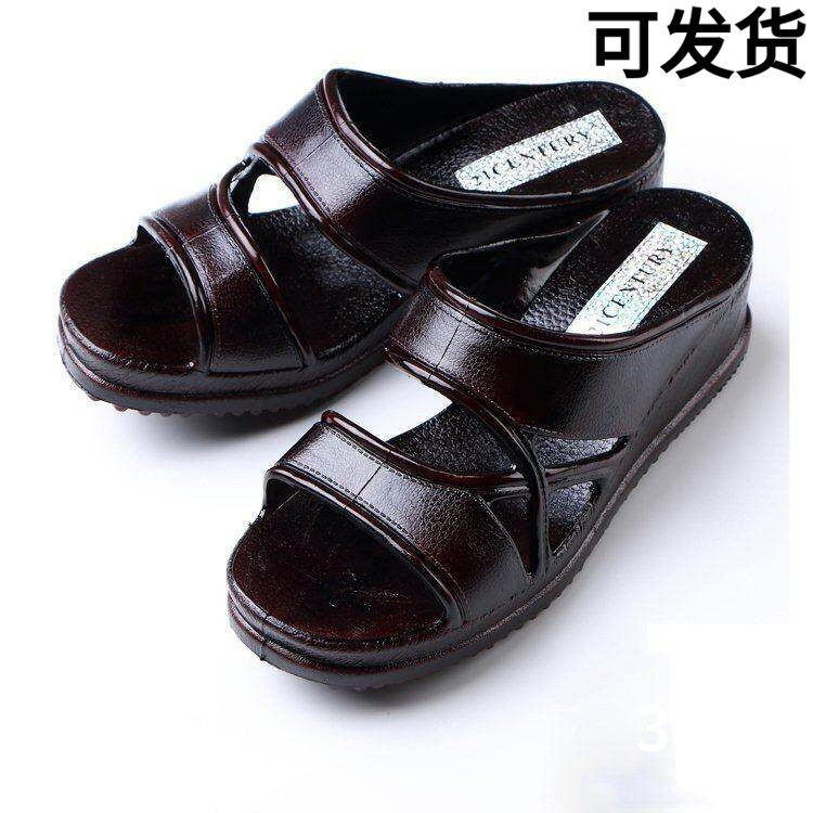 女21CENTURY拖鞋夏家用成熟台湾坡跟外穿中年高跟妈妈一字油凉拖