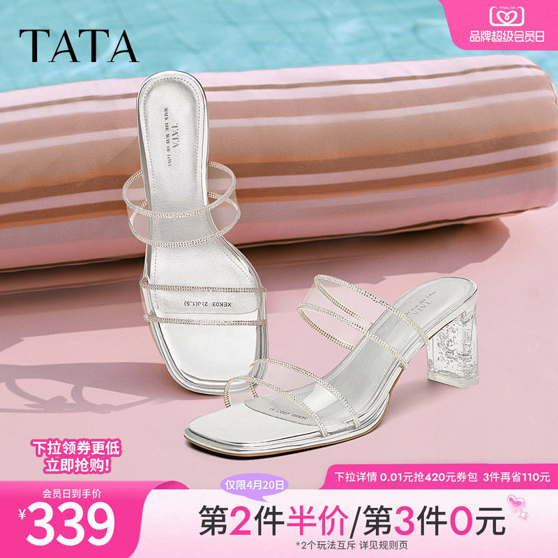 TATA他她女鞋2026夏季凉鞋一字拖高跟鞋百搭女时装拖鞋U3G01BT6