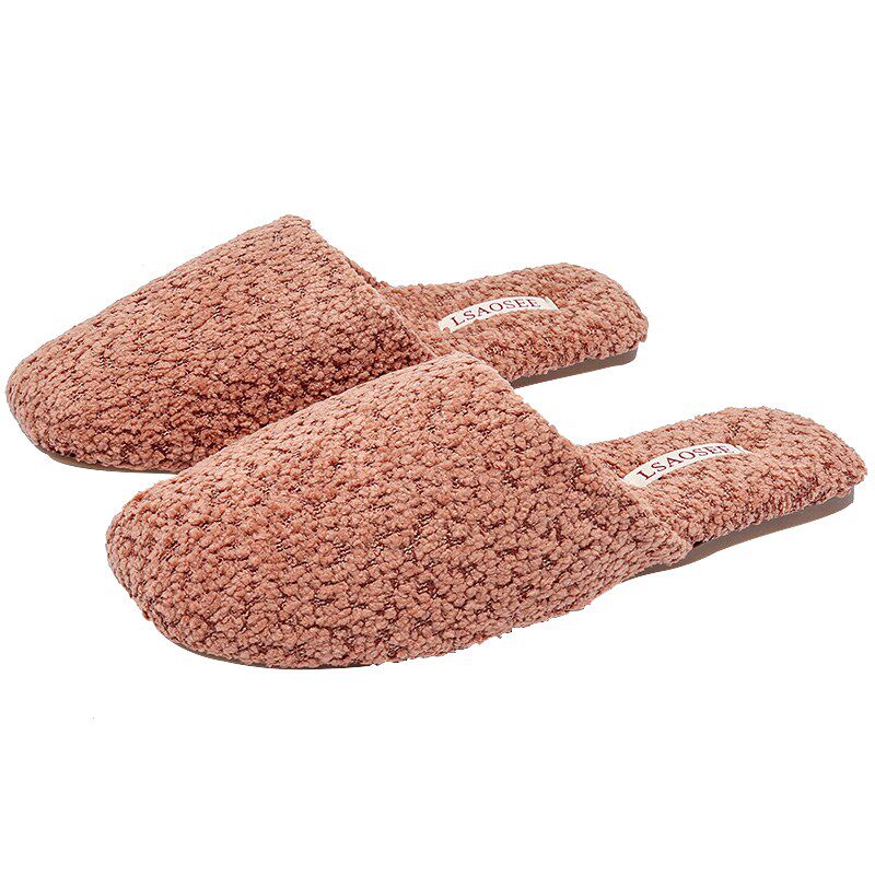 日韩简约风泰j迪绒高端居家软底包跟静音棉拖鞋