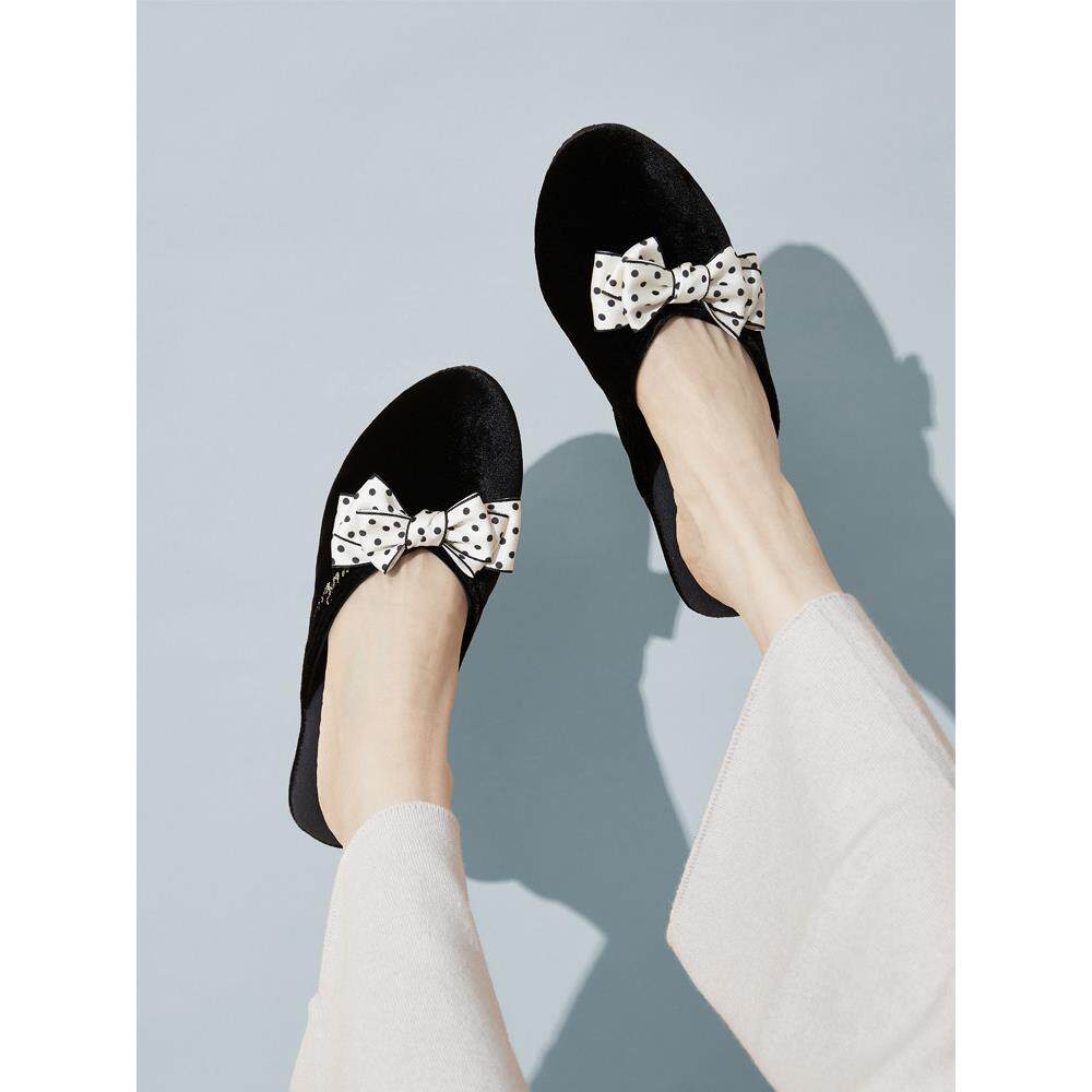 丝绒包头绣花蝴蝶春秋室内家用防水防滑静音棉法式透气吸汗拖鞋