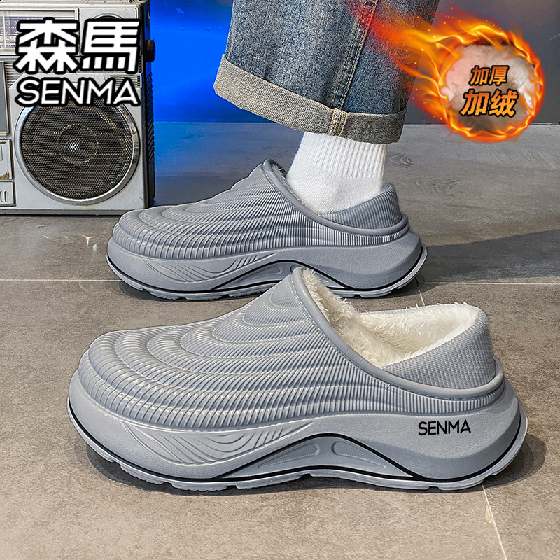 森马棉拖鞋男款2025新款冬季加绒保暖包跟棉鞋防水防滑踩屎感拖鞋