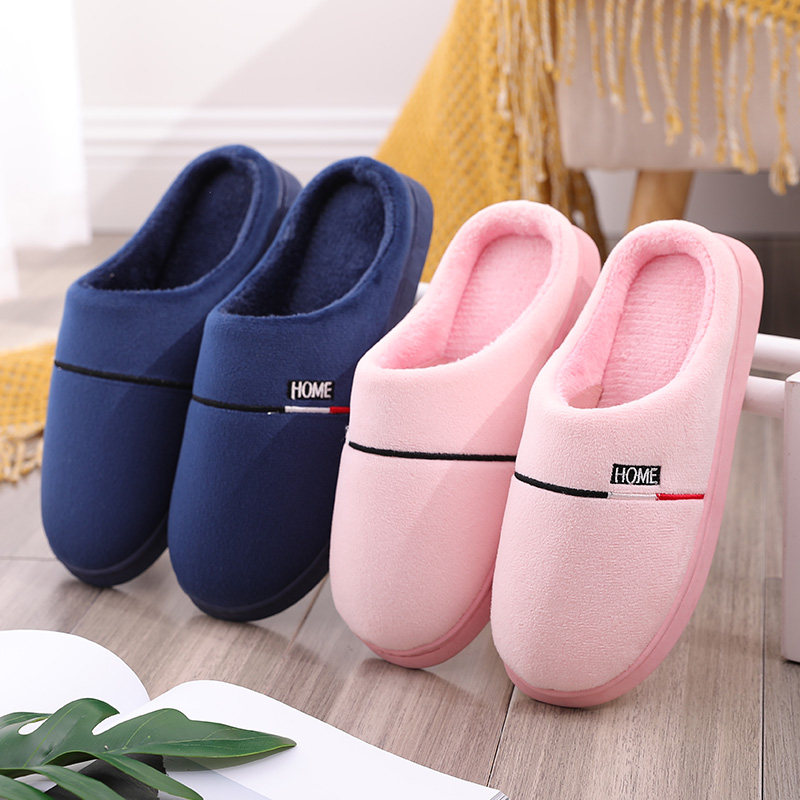 买1送1棉拖鞋女士秋冬季情侣室内居家防滑加绒加厚软底毛毛拖鞋男