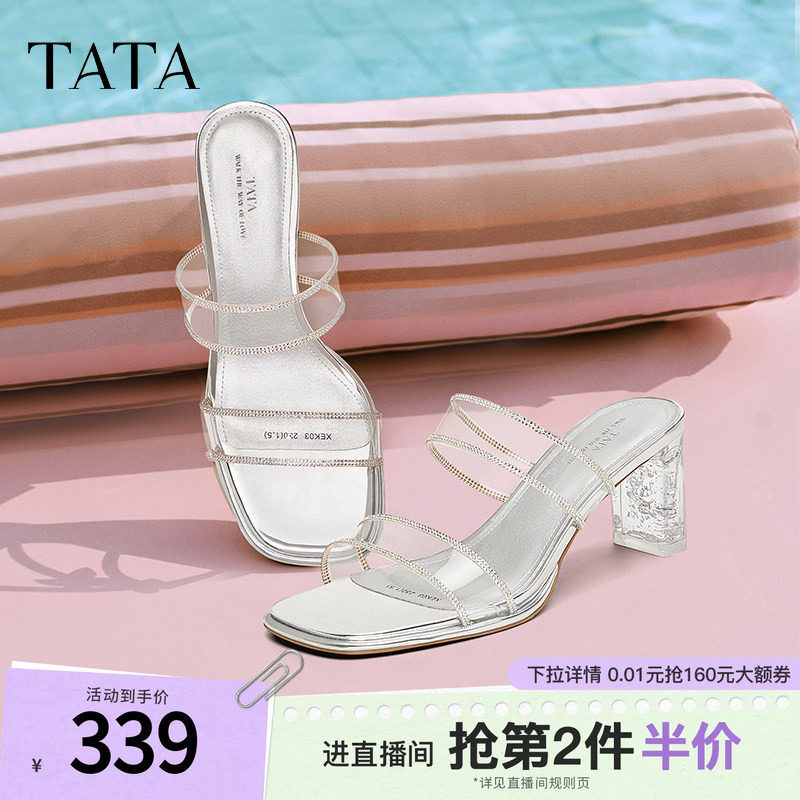 【王小毒】杜桑●细跟凉拖鞋女气质夏季外穿新款高跟拖鞋女时尚
