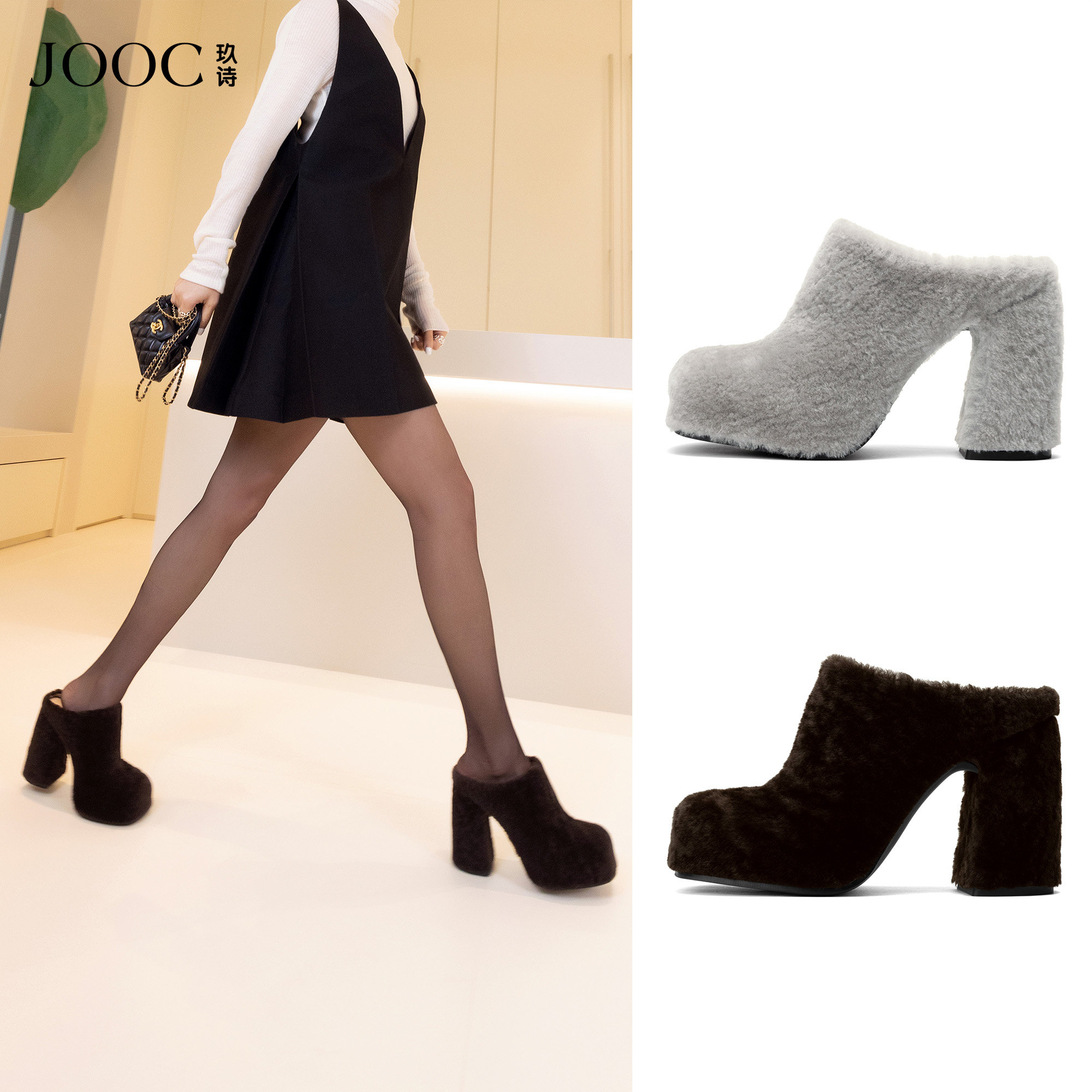 朴西冬季新款毛绒包跟棉拖鞋男士厚底保暖室内家居防滑情侣棉拖女
