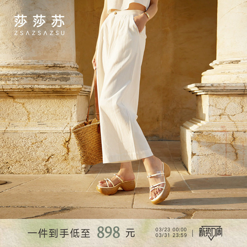 [和风海岛]莎莎苏春夏新款坡跟厚底增高罗马沙滩休闲凉拖鞋女外穿